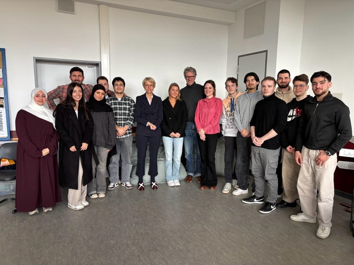 Nach ihrem Rundgang nahm sie sich Zeit für ein offenes Gespräch mit unseren Schülerinnen und Schülern. Sie wollte u.a. wissen, wie die Ausstellung ihre Sichtweisen beeinflusst hat – ob sich Perspektiven verändert haben und welche Erkenntnisse sie aus den Begegnungen mitnehmen. Außerdem wurde über die Bedeutung von Social Media für Jugendliche diskutiert – ein durchaus kontroverses Thema, das unter den Schüler:innen auf großes Interesse stieß.