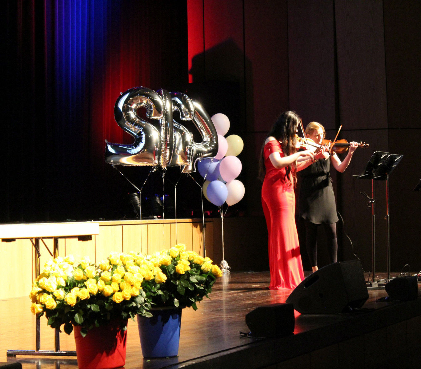 Die Feier bot ein abwechslungsreiches Programm, das von Musik, Reden, Schauspiel und emotionalen Momenten geprägt war. So gab es kleine Rückblicke, Danksagungen, die eine oder andere Anekdote und viele Glückwünsche. Als Überraschung hatten die Klassenlehrer*innen ihr Archiv durchsucht und präsentierten Fotos aus sechs gemeinsamen Jahren.