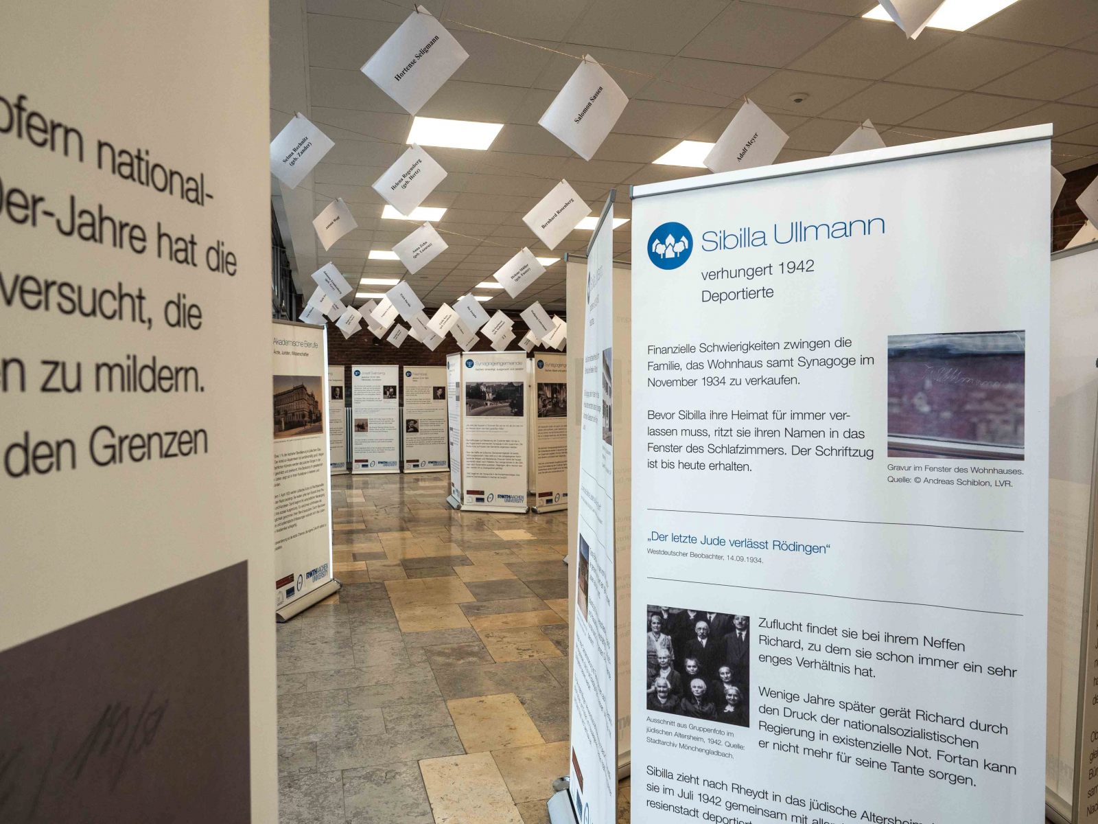 Neben informativen Stationen sind in der Ausstellung didaktisch aufbereitete Arbeitsmaterialien und interaktive Mitmachstationen verfügbar. Besonders eindringlich sind die Videobeiträge der KZ-Überlebenden Esther Bejarano sowie die Namen aller Opfer aus Neuss, die an der Decke der Bibliothek als Würdigung zu finden sind.