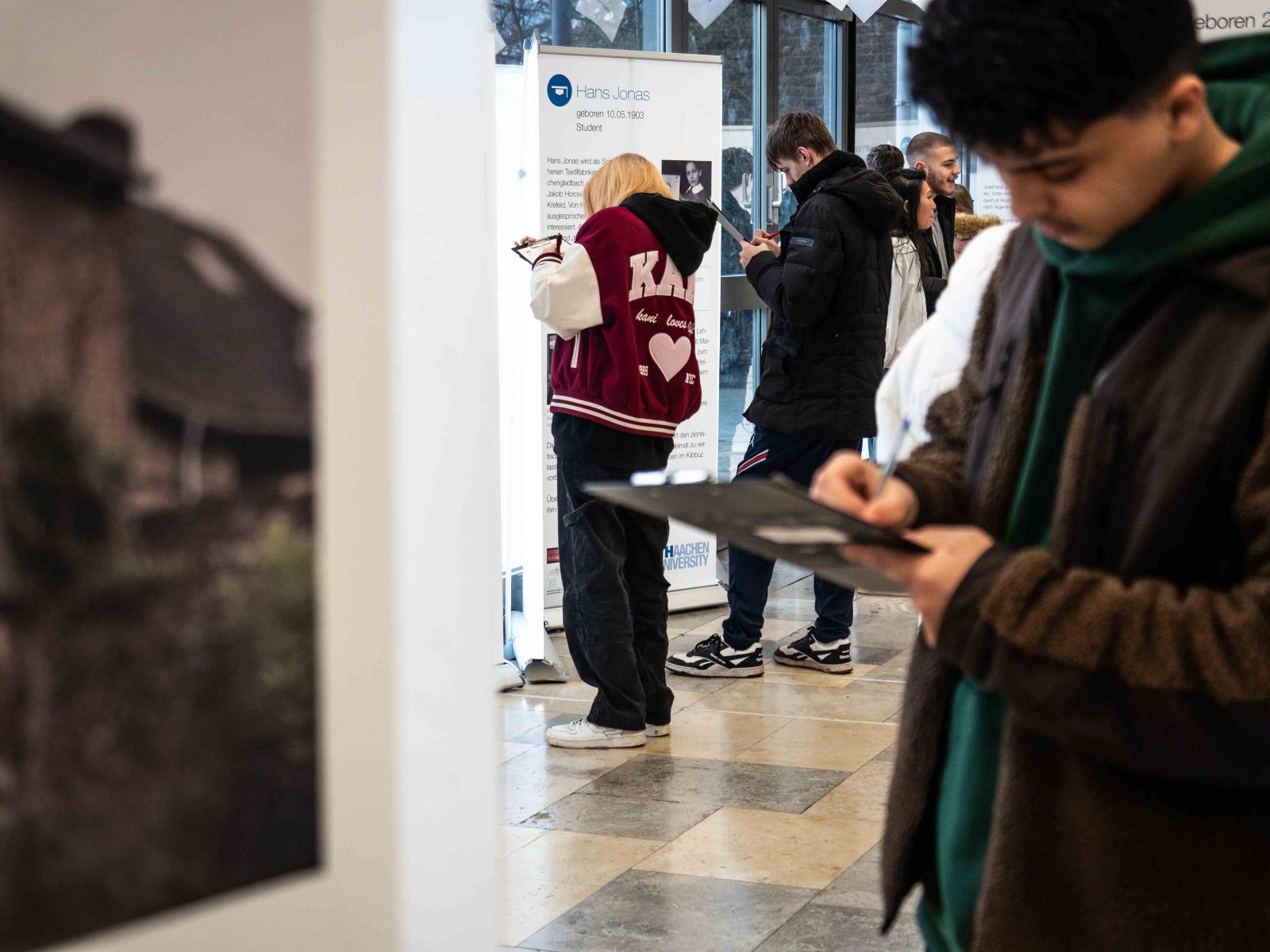 Die anwesenden Gäste, unter ihnen die Schul- und Kulturdezernentin Ursula Platen und der Leiter des Schulverwaltungsamt Ingo Habermann, zeigten sich beeindruckt von der Arbeit der Schülerinnen und Schüler, besonders derer, die trotz Klausurphase motiviert und herzlich durch die Ausstellung führten.