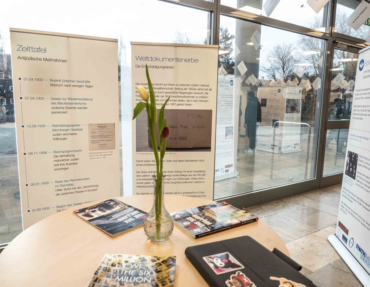 Noch bis zum 4. März 2024 haben interessierte Schulen die Möglichkeit, die Wanderausstellung „we, the six Million“ nach vorheriger Anmeldung in der Bibliothek der Gesamtschule Nordstadt zu besuchen und sich von den individuellen Lebensgeschichten berühren zu lassen.