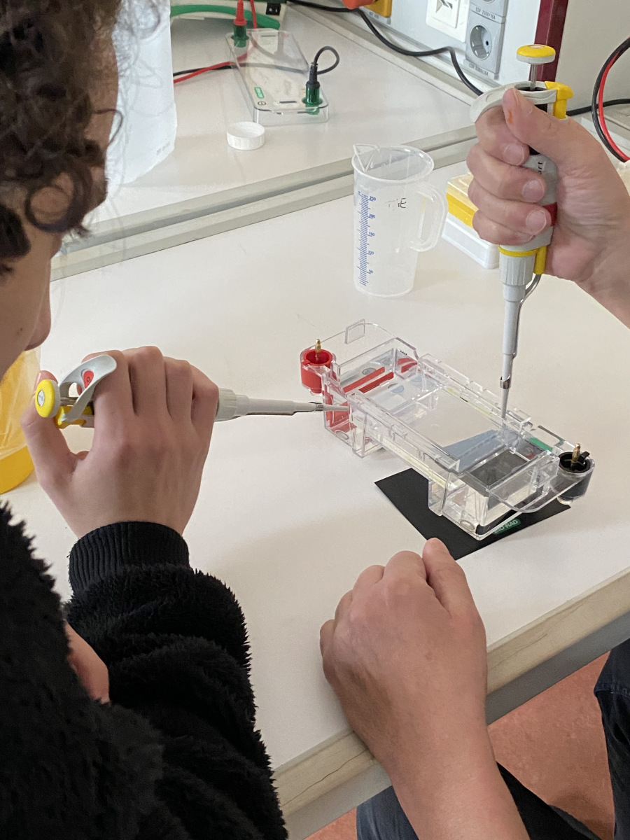 Am vergangenen Montag kam das Schülerlabor Just Science an unsere Schule und gewährte faszinierende Einblicke in die Welt der Genetik. Schüler*innen hatten die Gelegenheit, ihre eigene DNA zu isolieren und einen bestimmten Genabschnitt mittels PCR zu vermehren. Das Ergebnis wurde durch Gelelektrophorese sichtbar gemacht – ein Prozess, der mitgebrachtes Labormaterial wie Mikropipetten, Thermocycler und Zentrifugen erforderte.